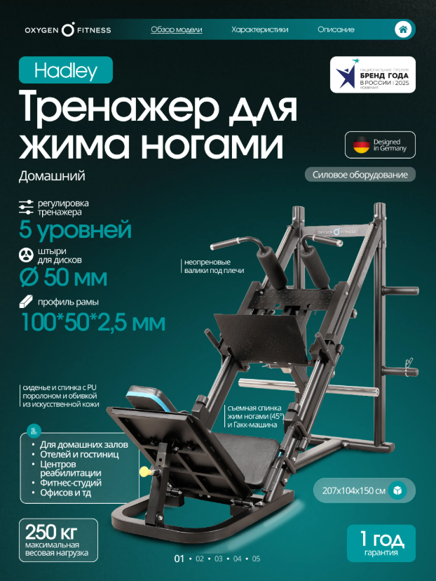 Профессиональный тренажер Жим ногами / Гакк-присед OXYGEN FITNESS HADLEY uzsi