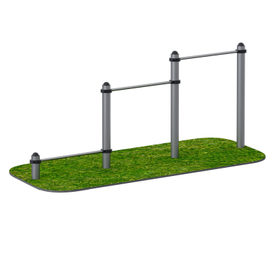 Перекладины выполнены из стальной трубы диаметром 34 мм и крепятся к стойкам при помощи прочных металлических хомутов. Надёжная фиксация исключает люфт и обеспечивает стабильность при выполнении упражнений.