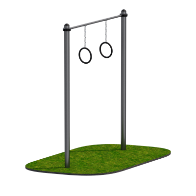 Перекладина выполнена из стальной трубы диаметром 34 мм и крепится к стойкам при помощи стальных хомутов, обеспечивающих надёжную фиксацию и устойчивость к динамическим нагрузкам. Металлические гимнастические кольца рассчитаны на интенсивное использование и устойчивы к износу.