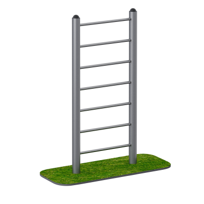 Перекладины изготовлены из стальной трубы диаметром 33,5 мм. Оптимальный диаметр обеспечивает удобный и надёжный хват при выполнении упражнений. Крепление перекладин осуществляется в антивандальный стакан с защитой от выкручивания, что исключает возможность демонтажа и повышает безопасность эксплуатации.