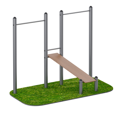 Лавка предназначена для выполнения упражнений на пресс: подъёмы корпуса, подъёмы ног и статические удержания. Регулярные тренировки укрепляют мышцы живота и формируют устойчивый мышечный корсет. Компактное сочетание двух функциональных элементов делает модель универсальным решением для уличной спортивной площадки.
