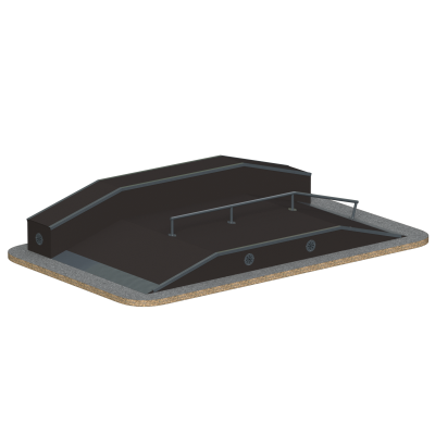 Основная горизонтальная поверхность оснащена приставным боксом, который расширяет вариативность выполнения трюков, а по центру расположен рейл для скольжений и технических элементов. Такая конфигурация позволяет формировать связки, комбинировать прыжки, мануалы и рейловые трюки.
