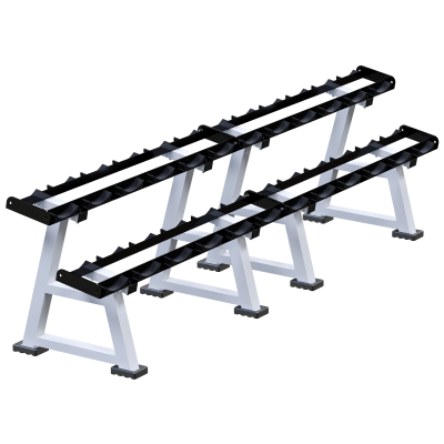 Профессиональная двухъярусная стойка для упорядоченного хранения гантелей в силовых и функциональных зонах.