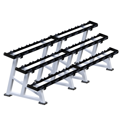 Профессиональная трехъярусная стойка для организованного хранения гантелей в коммерческих тренировочных залах.
