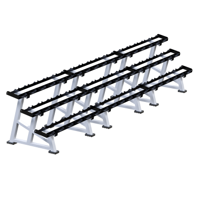 Гантельная стойка Sabirgym SG108 предназначена для хранения до 27 пар гантелей. Трехъярусная компоновка позволяет разместить большой объем инвентаря на одной линии, обеспечивая удобный доступ к гантелям различного веса и поддерживая порядок в силовой зоне.