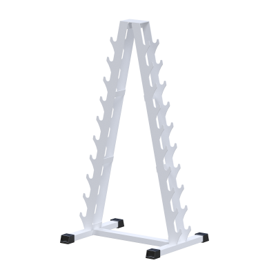 Вертикальная гантельная стойка пирамидального типа для компактного и безопасного хранения до 10 пар гантелей.