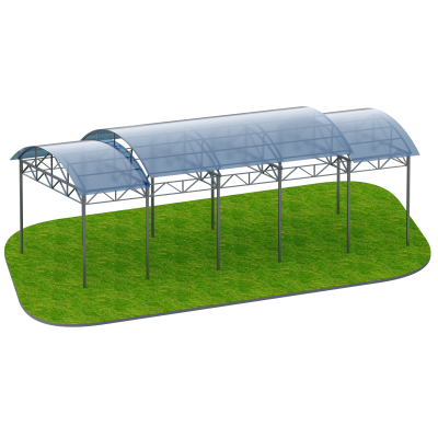 Большая площадь навеса позволяет разместить под ним несколько тренажеров или спортивных станций, создавая полноценную тренировочную зону для групповых занятий.